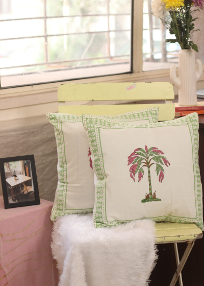 Pink Palm Cushion Cover - Set of two