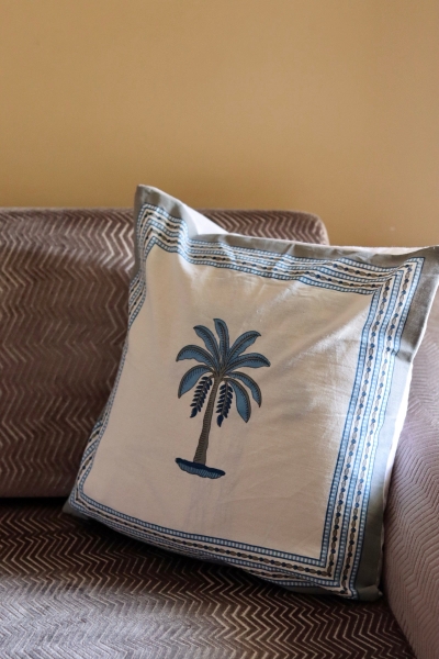 Blue Palm Cushion Cover