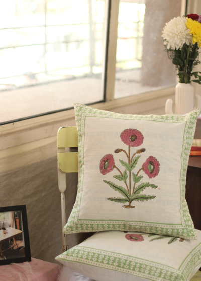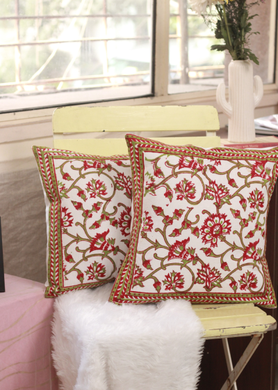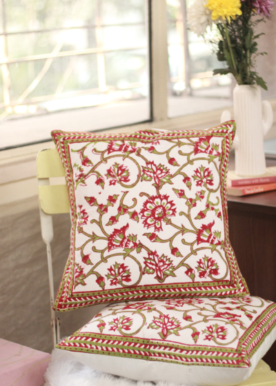 Red And Green Floral Cushion Cover