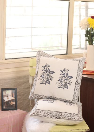 Blue And Grey Motif Cushion Cover