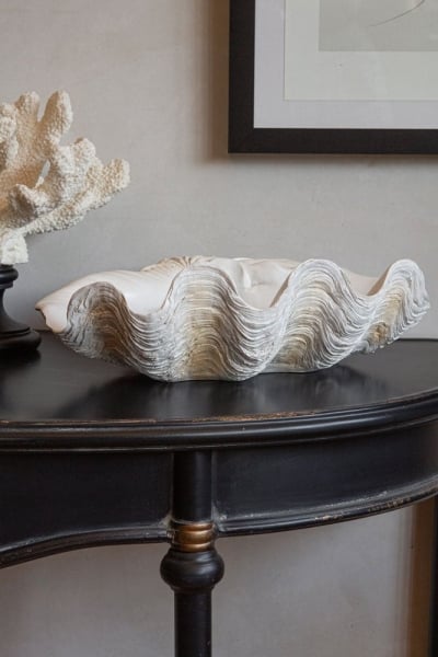 Large White Clam Shell Display Dish