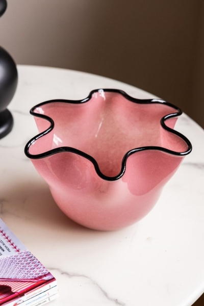 Pink Wavy Decorative Glass Bowl