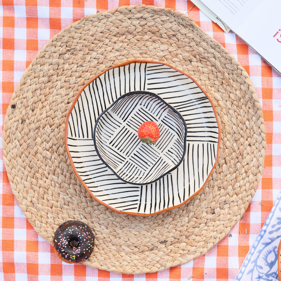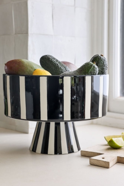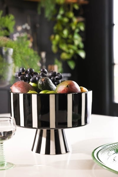 Black & White Striped Footed Bowl